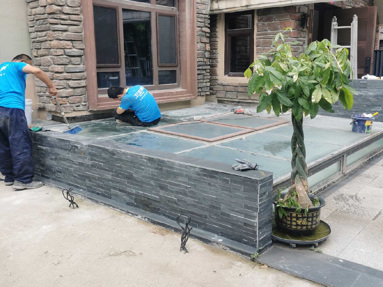 王先生联系了卫艺家防水公司后,公司迅速响应,派出了一支具备专业高空防水施工资质的防水师傅团队。师傅们身着专业的 “蜘蛛侠” 高空作业装备,来到王先生的住宅楼下。在正式勘察前,他们对设备进行了严格的检查和调试,确保安全无虞。